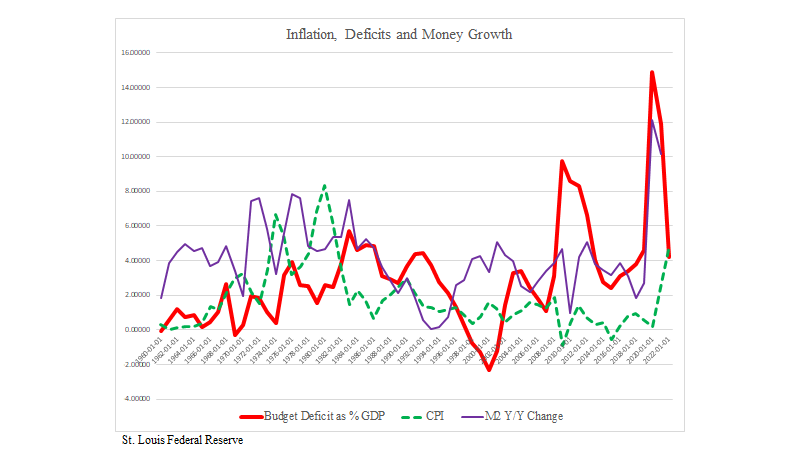 What of the deficit's impact on inflation? Inflation is not a single variable phenomenon but rather a results of a mix of factors. One we see influencing price levels is the monetary base, in the case of the chart below, specifically M2. The other are fiscal deficits run by the Federal government. Our belief is that these two forces can sometimes work to offset each other if they are moving in opposite direction. That said, all else equal, deficits contribute to inflationary impulses and given the scoring of the 2023 Omnibus budget that calls for deficits sustainably above long-term trends, we see the lack of fiscal restraint as a contributor to higher baseline inflation on a secular basis. Own goal #3.